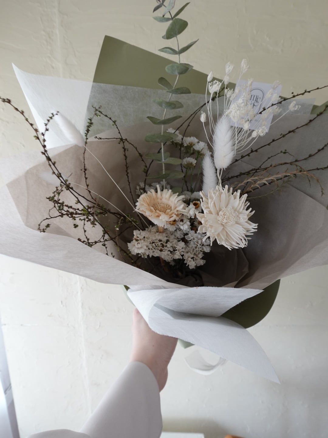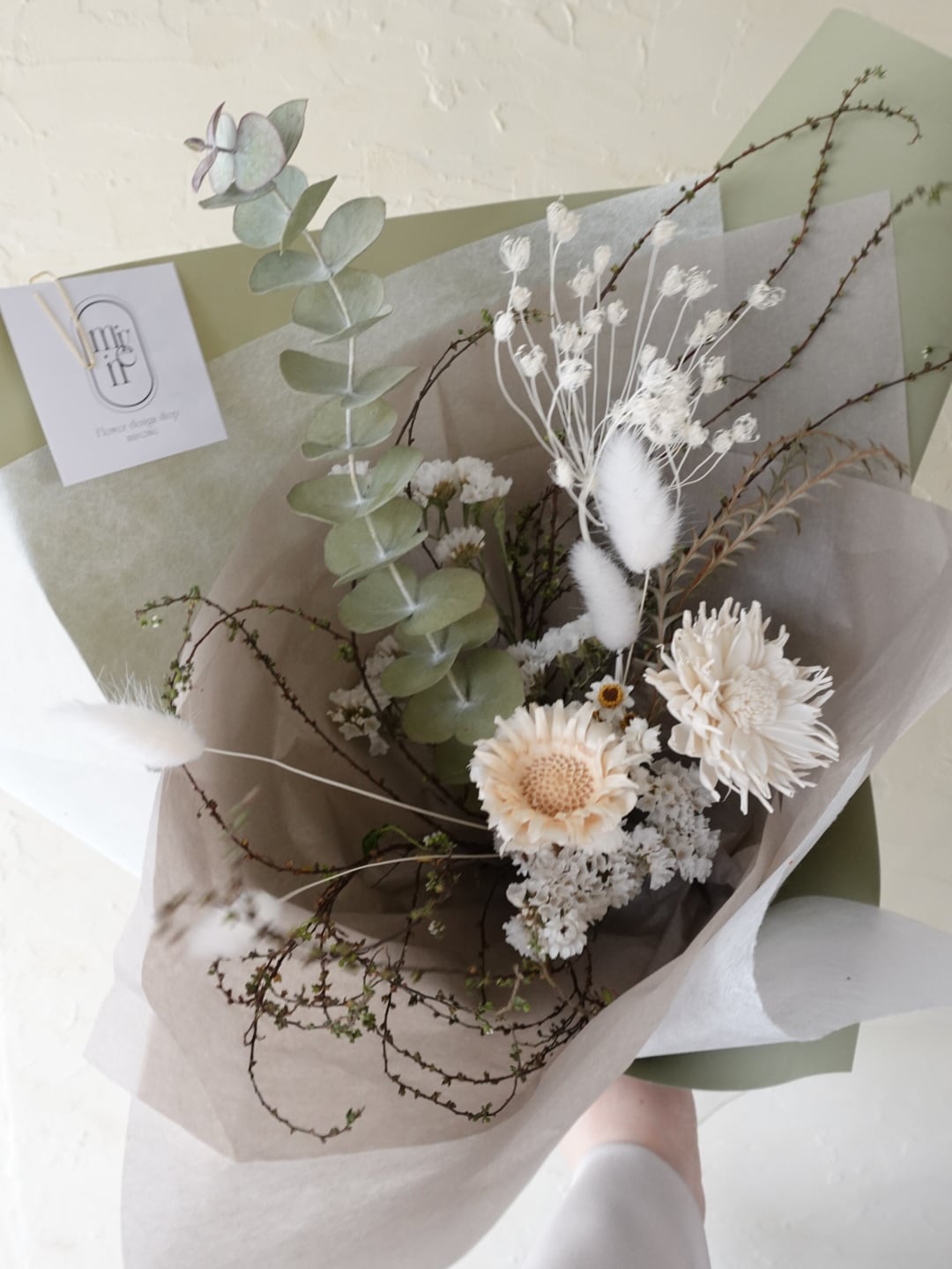 ですがドライフラワーはとても繊細なので配送時にお花や葉が多少落ちてしまう可能性がございます、予めご了承下さいませ。